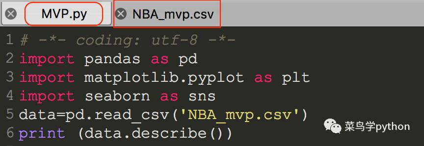 新建一个MVP.py文件,把MVP.py和NBA_mvp.csv文件放在一个目录下