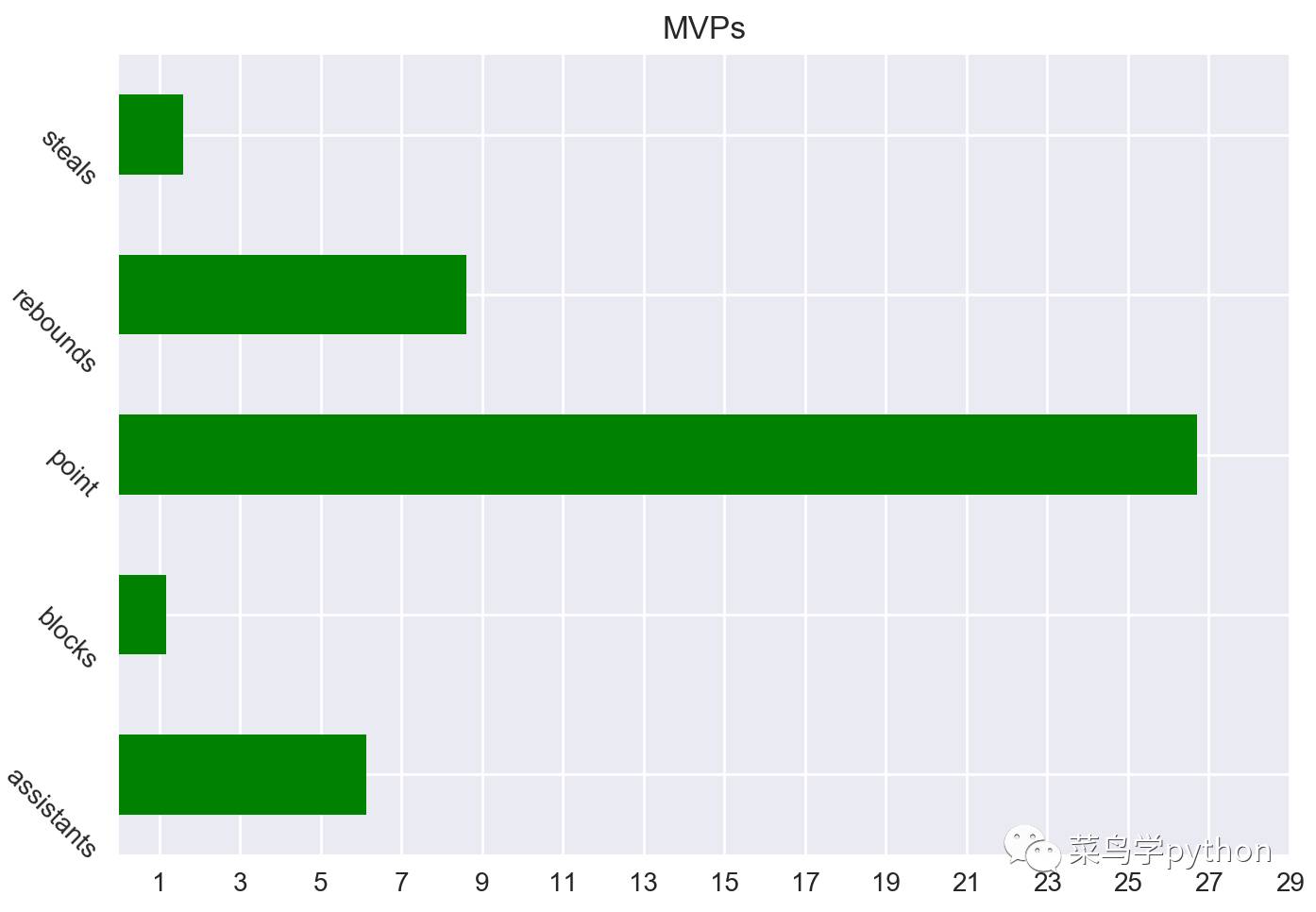 我之前写了一篇关于科比生涯的数据分析,这次打算写一篇关于常规赛MVP球员的数据分析,探讨要想成为MVP应该要做到怎样的高度。MVP,即“最有价值球员”,每赛季结束将会票选得出一人成为MVP。这次的数据用了近38年的MVP球员的数据,即1979-80开始,不再往前是因为那时没有3分的统计,不太贴近现在的篮球比赛了,所以就舍弃了